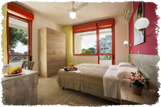 Tutte le stanze sono ampie e dotate di servizi privati con box doccia, balcone, frigobar e aria condizionata.